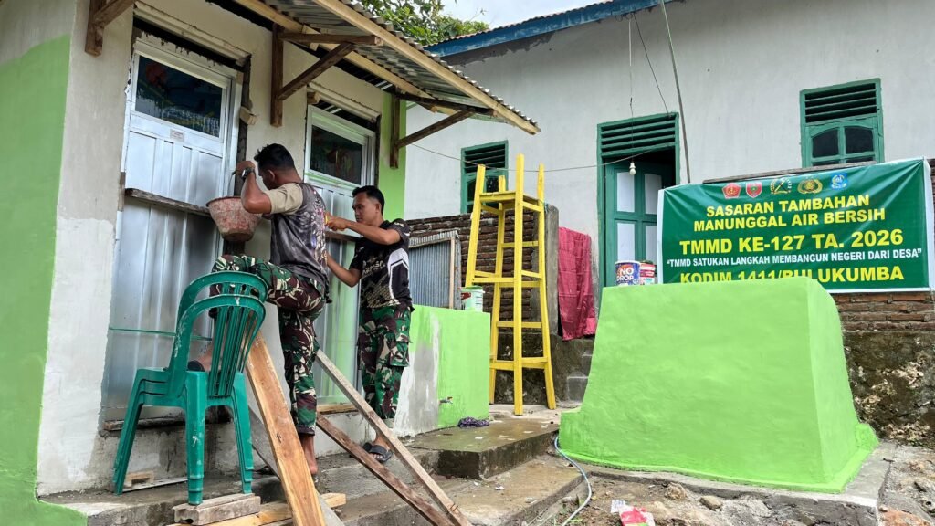 KODIM Bulukumba, Binkari – 26 Februari 2026 – Derap langkah prajurit dan warga menyatu dalam semangat gotong royong. Program TNI Manunggal Membangun Desa (TMMD) melalui sasaran tambahan Manunggal Air Bersih kini hampir mencapai garis akhir. Progres pekerjaan fisik menunjukkan capaian signifikan dan tinggal menyisakan tahap penyempurnaan sebelum resmi dimanfaatkan masyarakat.