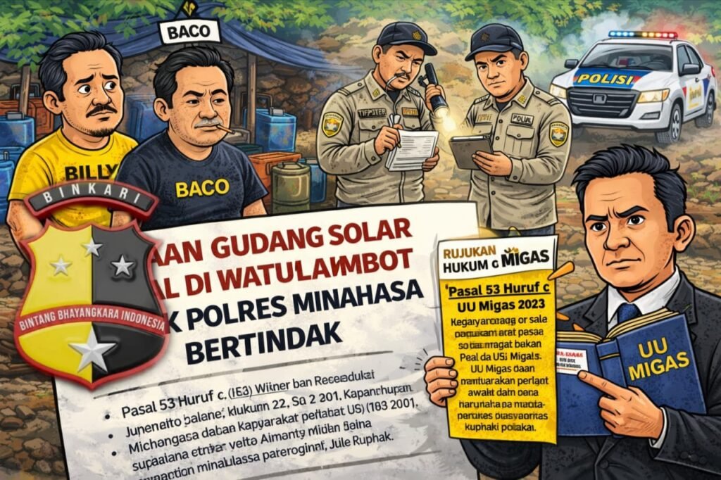 Minahasa, Binkari – Dugaan praktik penyimpanan Bahan Bakar Minyak (BBM) jenis solar tanpa izin di wilayah Watulambot kembali mencuat ke publik. Sejumlah warga bersama awak media mengungkap adanya aktivitas mencurigakan yang diduga berkaitan dengan penimbunan BBM bersubsidi.