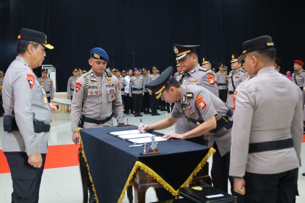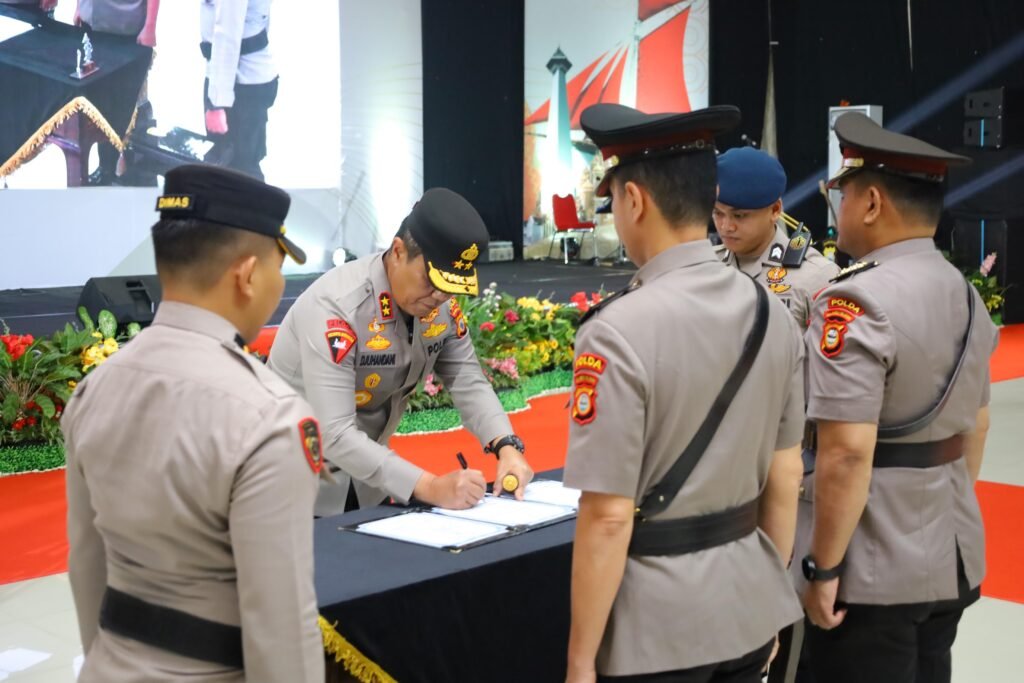 POLDA Sulawesi Selatan, Binkari – Kapolda Sulawesi Selatan Irjen Pol. Djuhandhani Rahardjo Puro, S.H., M.H., memimpin Upacara Serah Terima Jabatan (Sertijab) Pejabat Utama dan Kapolres Jajaran serta Pelantikan Jabatan Direktur Reserse Pelindungan Perempuan dan Anak (PPA) dan Pemberantasan Perdagangan Orang (PPO) Polda Sulsel. Kegiatan berlangsung di Aula Mappaodang Mapolda Sulsel, Selasa (20/01/2026).