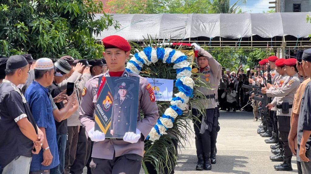 POLRES Pinrang, Binkari – Upacara persemayaman dan pemakaman jenazah personel Dit Samapta Polda Sulsel, almarhum Bripda DP, dilaksanakan secara kedinasan pada Senin (23/2/2026) di rumah duka, Desa Pincara, Kecamatan Patampanua, Kabupaten Pinrang. Prosesi berlangsung khidmat sebagai bentuk penghormatan terakhir atas pengabdian almarhum kepada institusi Polri.