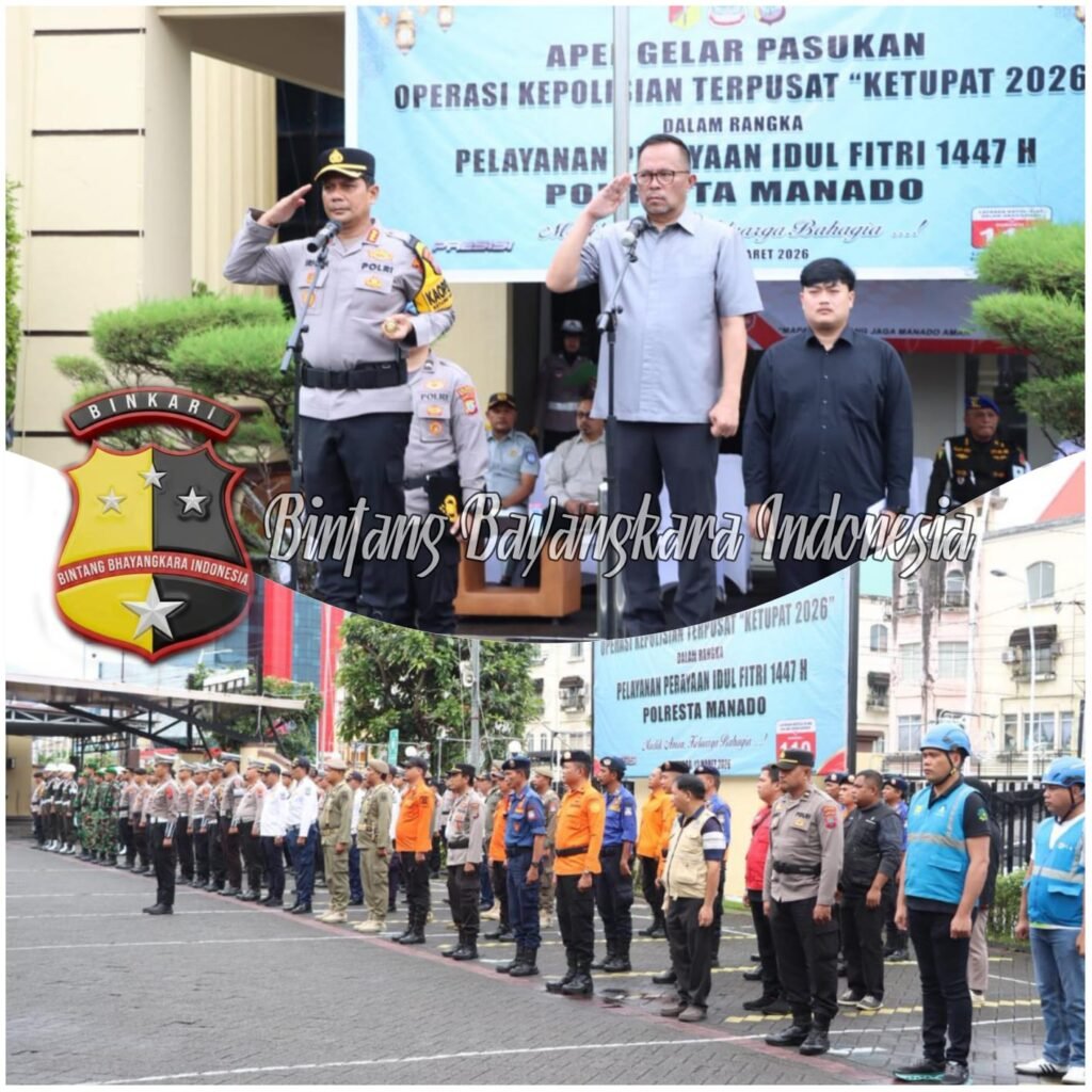 MANADO, Binkari — Pengamanan perayaan Idul Fitri 1447 Hijriah di Kota Manado mulai dimatangkan. Polresta Manado menggelar Apel Gelar Pasukan Operasi Ketupat Samrat 2026 sebagai tanda dimulainya kesiapan penuh aparat dalam mengamankan arus mudik serta seluruh rangkaian kegiatan Lebaran.