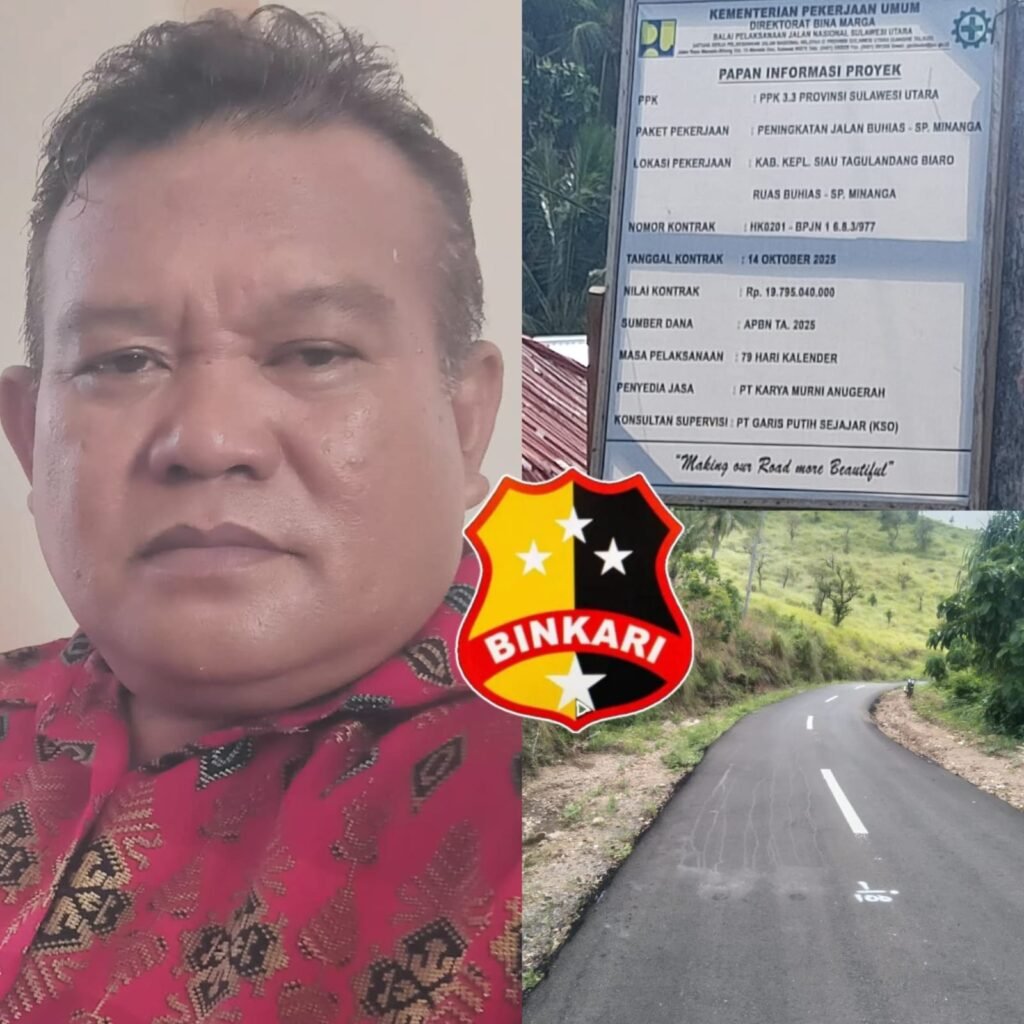 SITARO⚡Binkari — Proyek APBN Tahun 2025 berbandrol hampir 20 miliar untuk Peningkatan Ruas Jalan Buhias–Simpang Minanga di Kabupaten Kepulauan Sitaro kini di pertanyakan publik, diduga beraroma tak sedap, korupsi.