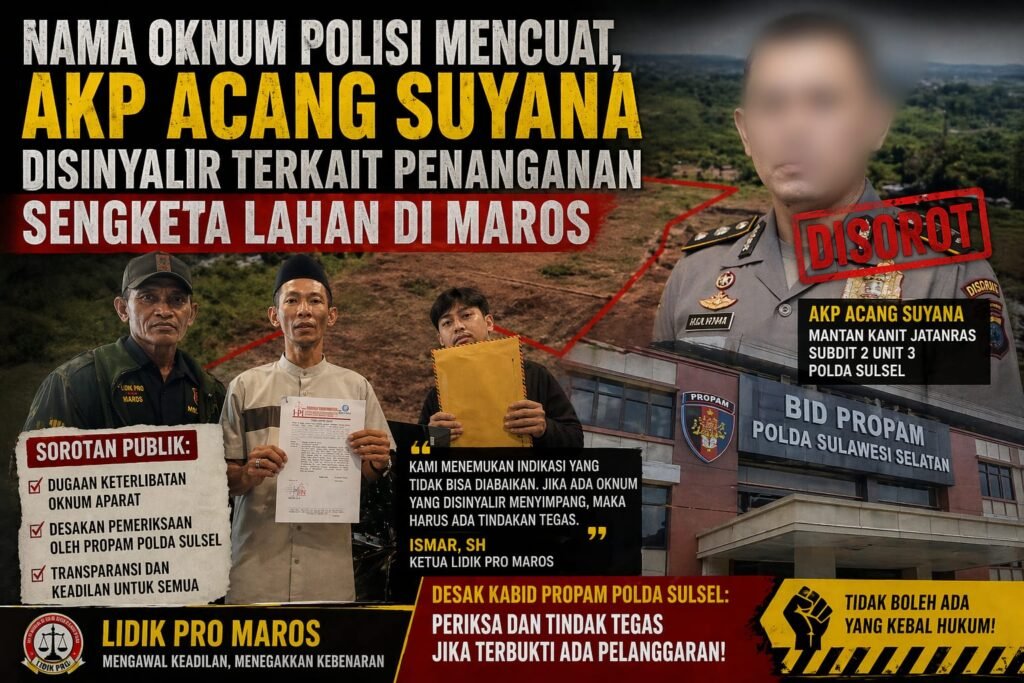 Lembaga Investigasi Mendidik Pro Rakyat Nusantara (Lidik Pro) Maros mengungkap adanya indikasi yang mengarah pada keterlibatan oknum aparat yang disinyalir turut berperan dalam dinamika perkara tersebut.