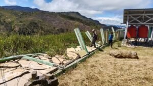 JAYAWIJAYA, Binkari – Pagar bangunan Pusat Kesehatan Masyarakat (Puskesmas) di Distrik Bpiri, Kabupaten Jayawijaya, dilaporkan ambruk total pada Tgl. 6/4/2026. Proyek yang baru dikerjakan pada tahun 2022 oleh CV. Numaabanen tersebut kini menuai sorotan tajam karena dinilai dikerjakan dengan kualitas konstruksi yang buruk.
