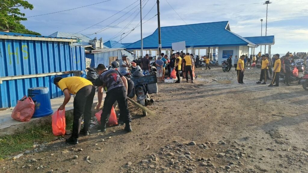 Polres Bone, Binkari – Personel Polres Bone bersama jajaran Sat Brimob Yon C Bone melaksanakan kegiatan korve (kerja bakti) di sekitaran Tempat Pelelangan Ikan (TPI) Bajoe, Kecamatan Tanete Riattang Timur, Kabupaten Bone, Jumat pagi (13/02/2026).