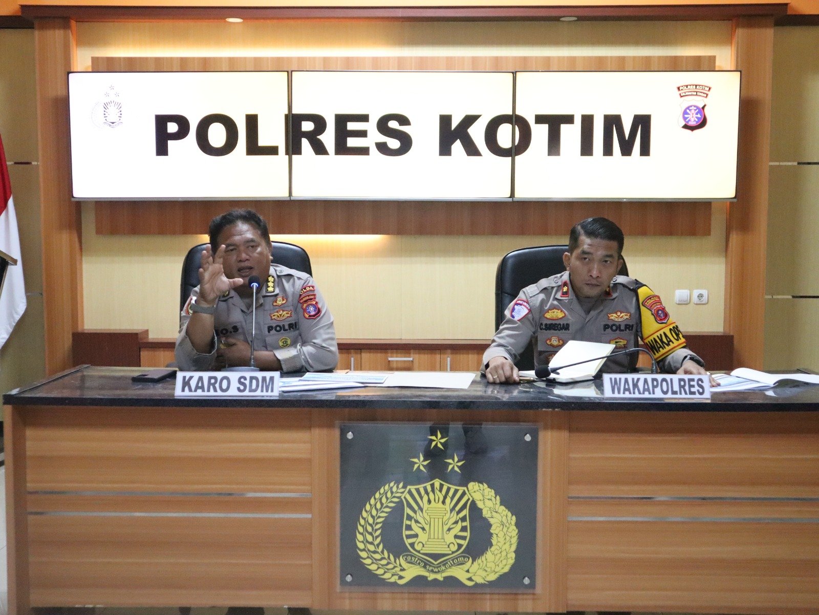 POLRES Kotim, Kaltim, Binkari – Polres Kotim mengikuti Rapat Koordinasi Ketahanan Pangan Tahun 2026 yang di selenggarakan polda Kalteng di aula lobby Polres Kotim dipimpin oleh Bapak Karo SDM Polda Kalteng Kombes Pol Leo Surya N. Simatupang, S.I.K., didampingi Wakapolres Kotim Kompol Christian Maruli Tua Siregar, S.I.K., M.M. mewakili Kapolres Kotim dan hadir dalam kegiatan rapat tersebut Kasubbagwatpers Polres Kotim, KBO Satreskrim Polres Kotim, Kanit Tipikor Satreskrim Polres Kotim, dan seluruh Kapolsek Polres Kotim jajaran, pada hari Jumat pagi (13/03/2026).