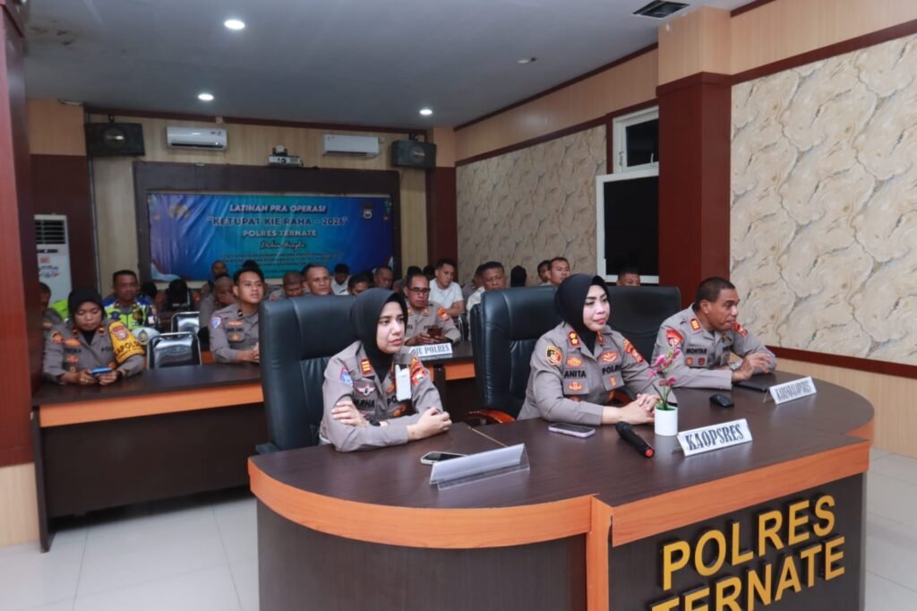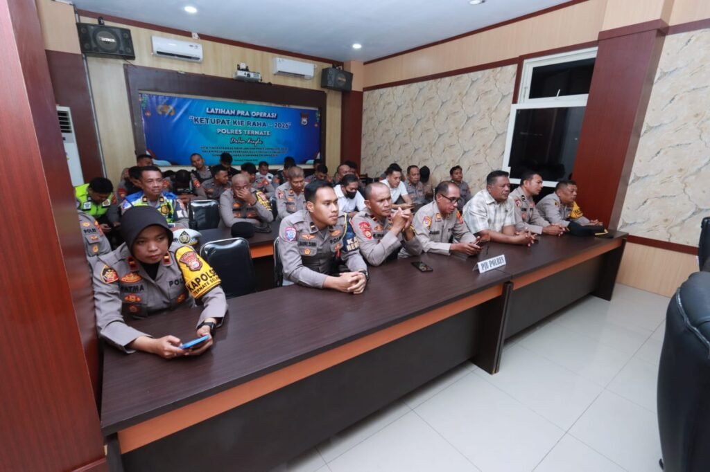 Kegiatan tersebut diikuti langsung oleh Kapolres Ternate AKBP Anita Ratna Yulianto, S.I.K., M.H., didampingi Wakapolres Ternate Kompol Kurniawi H. Barmawi, S.I.K., M.Si., para pejabat utama Polres Ternate, para Kapolsek jajaran, serta perwira dan personel yang terlibat dalam Operasi Ketupat Kie Raha 2026.