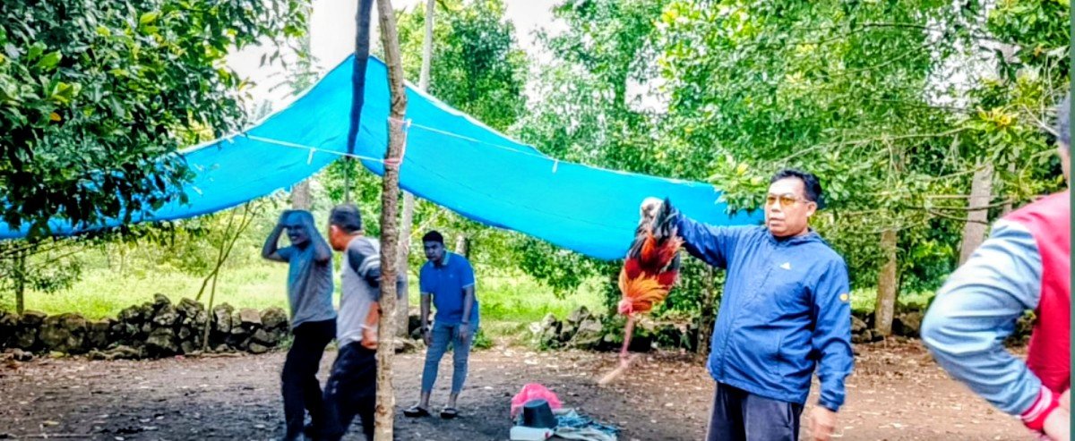 Meski begitu, polisi tetap menemukan sejumlah barang bukti yang menguatkan dugaan praktik perjudian tersebut. Di antaranya satu ekor ayam jantan aduan dan tenda biru yang diduga digunakan sebagai pelindung saat kegiatan berlangsung.