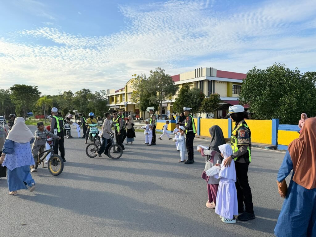Sejumlah personel tampak membagikan paket takjil kepada pengendara roda dua dan roda empat yang melintas di lokasi kegiatan. Anak-anak PAUD turut ambil bagian dengan didampingi para guru, sehingga suasana berlangsung tertib dan penuh keceriaan.