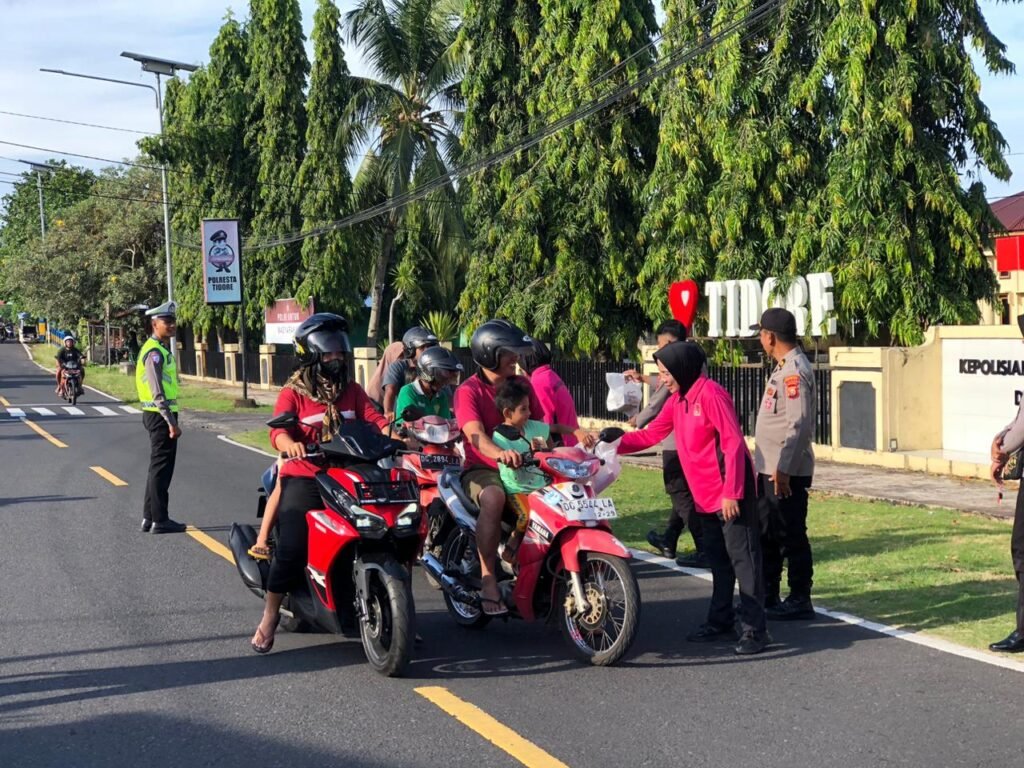 POLRES Tidore, Binkari – Dalam semangat Ramadan, Kepolisian Resor Kota (Polresta) Tidore berkolaborasi dengan Bhayangkari, Komite Nasional Pemuda Indonesia (KNPI), dan Badan Eksekutif Mahasiswa (BEM) Sekolah Tinggi Ilmu Manajemen dan Ilmu Komputer (STIMIK) Tidore Mandiri menggelar aksi sosial pembagian takjil di depan Mapolresta Tidore (2/3/2026) kemarin.