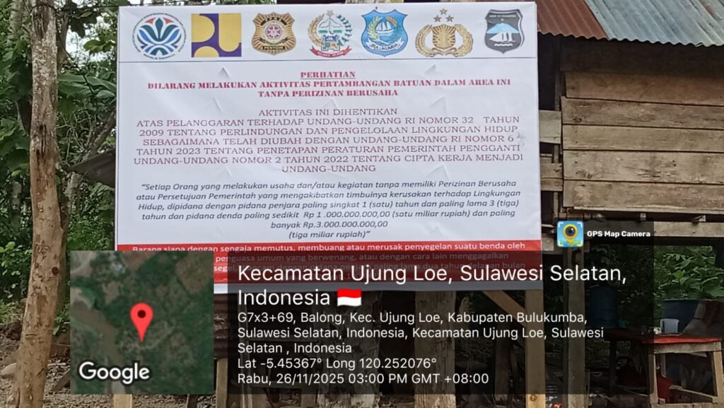 Bulukumba, Binkari — selasa 27 Januari 2026 Aktivitas tambang galian C yang telah dilarang beroperasi kembali menuai sorotan. Di wilayah Kacibo, Desa Balong, aktivitas penambangan justru berlangsung pada tengah malam, meski di lokasi telah terpasang papan larangan resmi. Ironisnya, praktik ini terjadi secara terbuka, seolah hukum hanya berlaku di siang hari dan menghilang saat malam tiba.