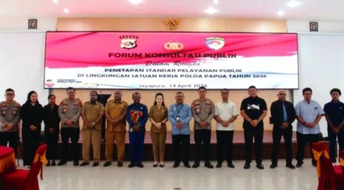 JAYAPURA, Binkari – Kepolisian Daerah (Polda) Papua menggelar Forum Konsultasi Publik (FKP) Tahun 2026 sebagai langkah strategis untuk memperkuat transparansi dan kualitas pelayanan kepolisian. Kegiatan yang berlangsung secara hybrid ini diselenggarakan di Aula Rastra Samara, Mapolda Lama, Jayapura, pada Selasa (14/4/2026).